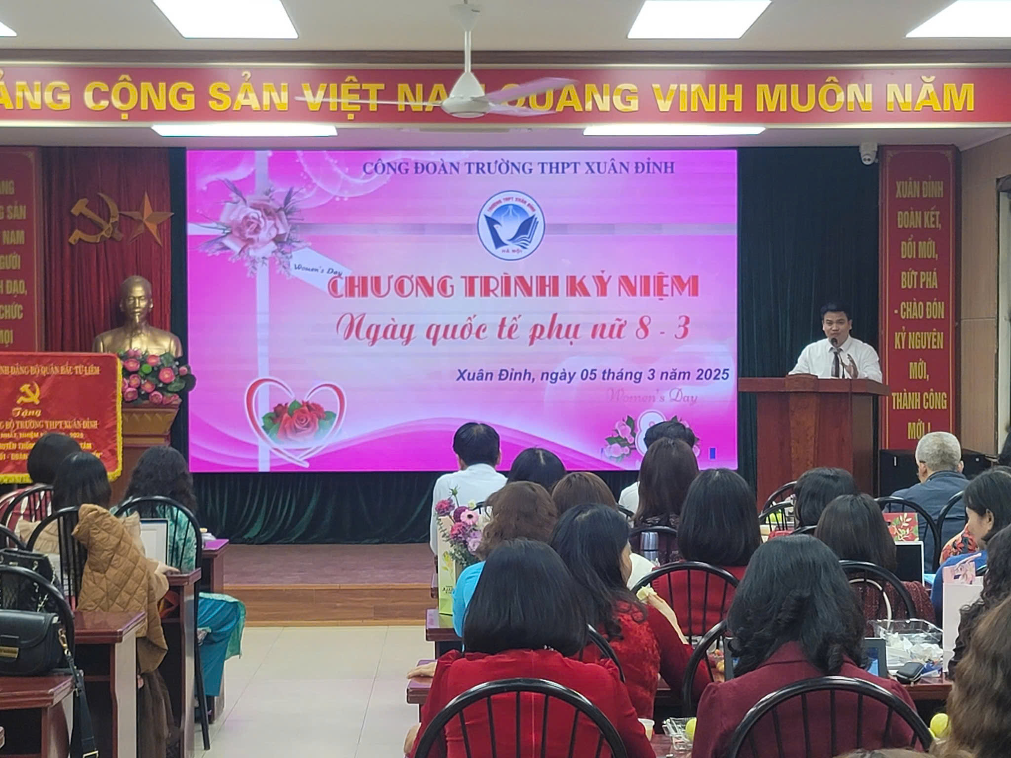 Chiều ngày 05/03/2025, Ban Giám hiệu– BCH Công đoàn nhà trường đã phối hợp tổ chức buổi kỉ niệm 115 năm ngày Quốc tế phụ nữ 8/3 và 1985 năm khởi nghĩa Hai Bà Trưng nhằm tôn vinh vẻ đẹp và ghi nhận những đóng góp của các đồng chí nữ CB, GV- NV của trường THPT Xuân Đỉnh.