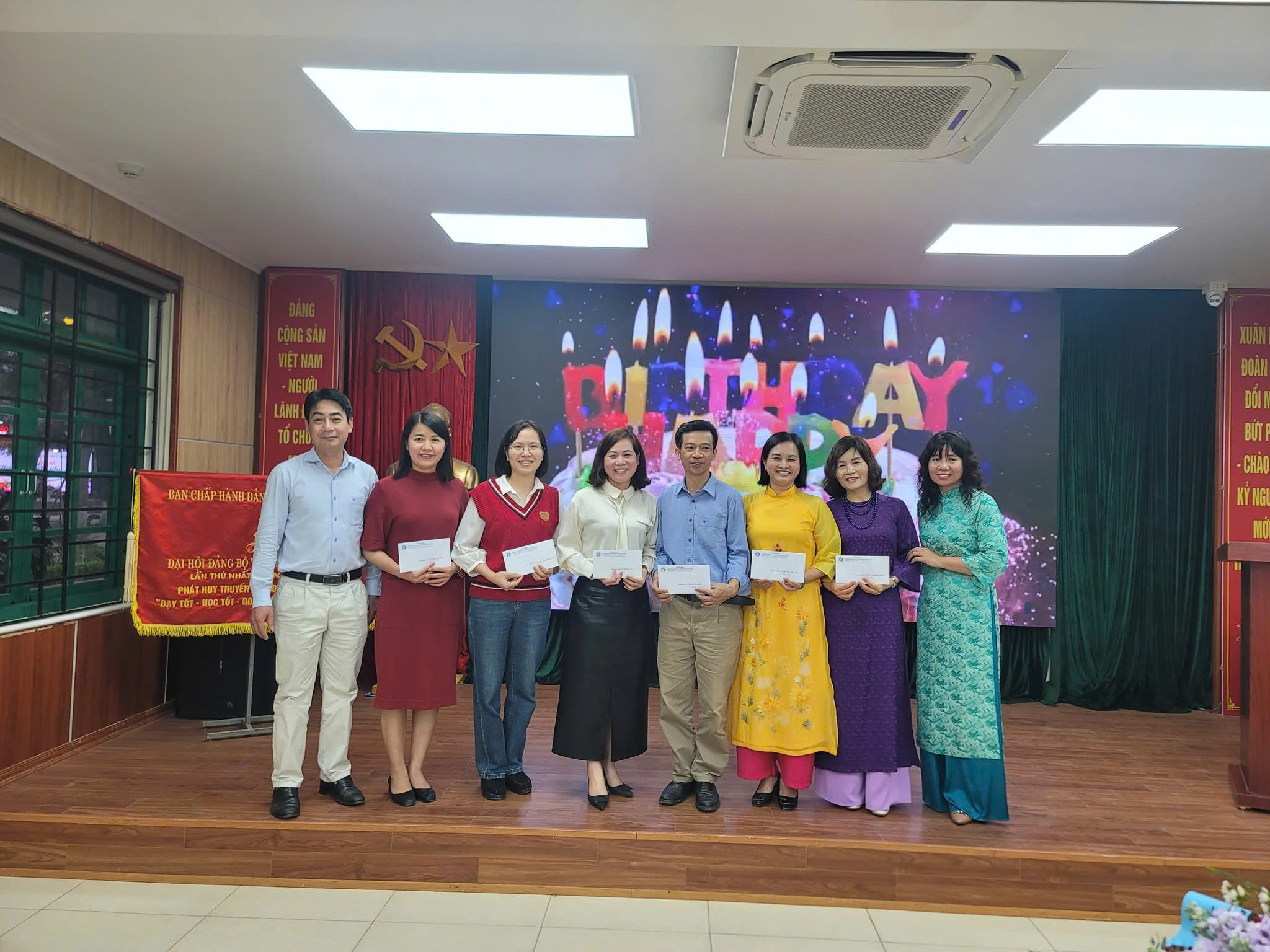 Thay mặt tập thể lãnh đạo và các đ/c nam CB,GV-NV, đồng chí Vũ Duy Khôi - Bí thư Đảng ủy, Hiệu trưởng nhà trường tặng bó hoa tươi thắm và gửi lời chúc mừng tốt đẹp nhất như một sự tri ân đặc biệt, tôn vinh những cống hiến của các đ/c nữ cán bộ, giáo viên, nhân viên đối với sự nghiệp giáo dục và phát triển của nhà trường.