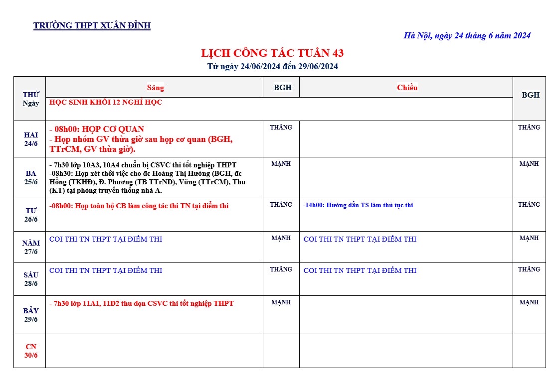 Lịch Công Tác Tuần 43 (NH: 2023-2024)