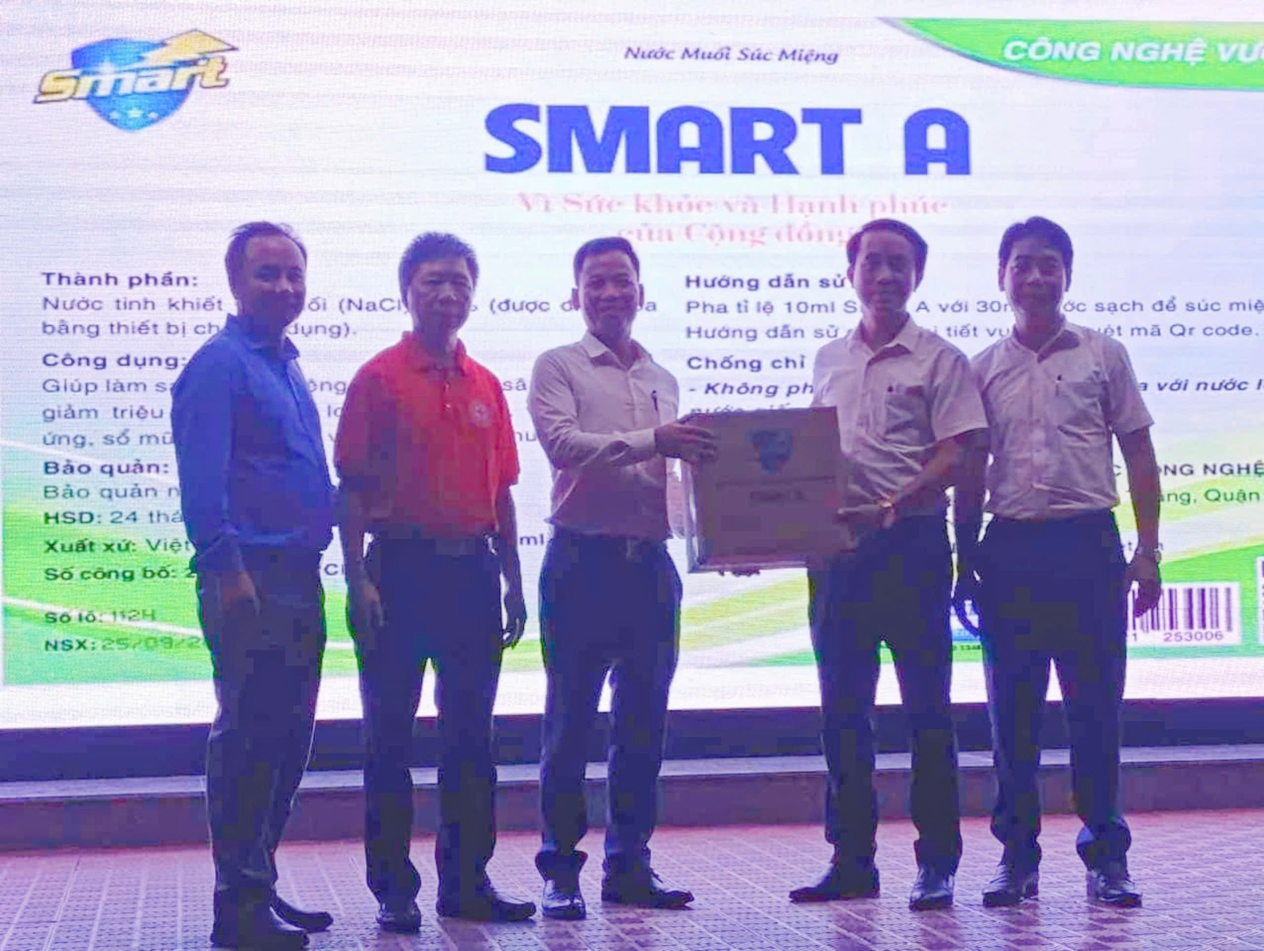 Đại diện Công ty TNHH Khoa học Ứng dụng Công nghệ Quốc tế tri ân các thầy giáo, cô giáo và tặng nhà trường sản phẩm Smart A có nhiều tác dụng tốt cho chăm sóc sức khỏe ban đầu.